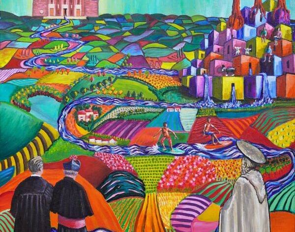Journey is a donated GlasGogh painting created to celebrate SCIAF’s 60 years of humanitarian work, blending Glasgow roots, community collaboration and expressive storytelling through art.